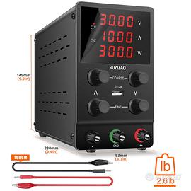 Alta Precisione, Bassa Ondulazione, Display a LED, Spegnimento Automatico in Modalità C.C/C.V: Alimentatore da laboratorio è un regolatore di alimentazione professionale ad alta precisione di 0,01 V e 0,001 A, alimentatore da banco. Il display a LED retroilluminato a 4 cifre ha il vantaggio di una risoluzione ad alta risoluzione. La modalità di tensione costante e di corrente costante possono chiudere automaticamente l'interruttore.
