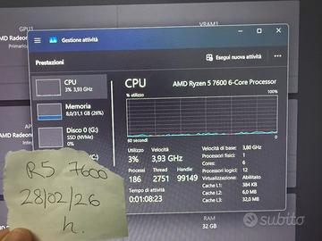 Vendo Ryzen 5 7600 di AMD per la piattaforma AM5 in ottime condizioni, potete anche vedere prove di funzionamento nelle foto.