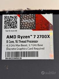 Processore MAD Ryzen 7 2700x. Vendo SOLO processore, all’interno NON è presente il dissipatore. Vendo perché non lo uso piu dopo aver fatto upgrade al mio pc.