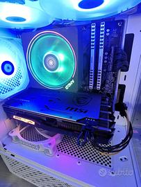 Vendo Pc Gaming cosi composto : -Case Mars Gaming MC-SE2 4 Ventole aRgb Bianco Nuovo -MB GIGABYTE B550M-K PCIe 4.0 4slot ddr4 Nuovo -CPU Ryzen™ 7 3700X 8Core/16Threads 40mb cache -512GB M2 Nvme SSD -16GB DDR4 Corsair Vengeance LPX 3200 (AMD EXPO) Nuovo -RTX MSI 2060 GAMING Z OC 8GB DDR6 192Bit -Dissipatore Amd Wraith Prism RGB Nuovo -PSU Tacens Anima III da 600W Active Bronze Nuovo La maggior parte dei componenti sono nuovi e pertanto si garantisce la massima efficienza e funzionalità. Ottima configurazione per Gaming , Edting video e va bene anche per uso uffico. Configurato ed ottimizzato per sfruttare al massimo tutta la potenza in Gaming per giocare con dettagli alti, le 4 ventole RGB da 12cm controllate tramite telecomando (incluso) garantiscono una ventilazione e una temperatura ottimale in ogni condizione d'utilizzo. W11 Pro installato. Disponibile per qualsiasi chiarimento o info.