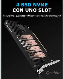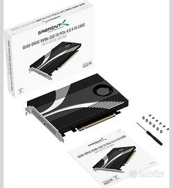 Scheda adattatore Sabrent per 4 unità SSD NVMe. - Compatibile con PCIe 4.0 X16. - Dotata di raffreddamento attivo.