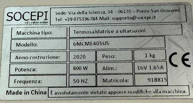 Ultrasonic clam shell sealer Modello 6MC ME-405US MERCIER CORPORATION DEL 2020