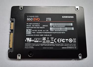 Vendo SSD Interno SATA 2.5" Samsung 860 EVO da 2 TB (MZ-76E2T0), tenuto in perfette condizioni