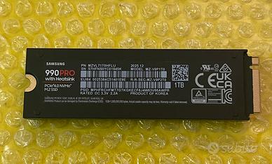 Samsung Memorie MZ-V9P1T0C 990 PRO SSD Interno con Dissipatore di Calore da 1TB, compatibile con Playstation 5, PCIe Gen 4.0 x4 NVMe M.2