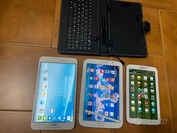 3 tablet due Samsung e una Asus con android vecchio tenute bene più tastiera custodia