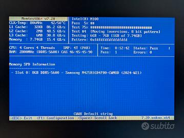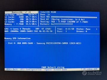 Entrambi i banchi sono stati testati e funzionano perfettamente. Allego gli screenshot di MemTest86. Vendo per upgrade a 16GB.