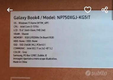 Samsung galaxi 4 Modello :NP750XGJ-KG5IT. NUOVO ANCORA NELLA CONFEZIONE CHIUSA , come da foto