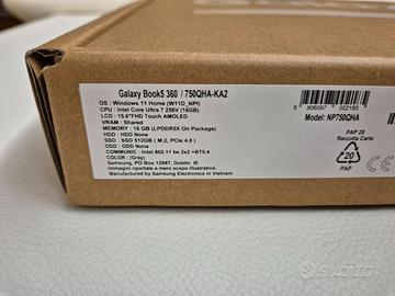 Vendo Samsung Galaxy Book5 360 15,6″ modello NP750QHA-KA2, nuovo, mai aperto, con scatola ancora sigillata. Garanzia Amazon.