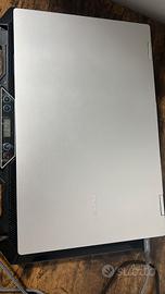 Bellissimo Samsung Galaxy Book Pro 360 (codice NP950QDB), laptop convertibile 2-in-1 premium ultra-sottile con cerniera a 360° che si trasforma facilmente in tablet. Specifiche principali: Schermo 15.6" Super AMOLED touchscreen Full HD (1920x1080) con colori vividi, contrasto eccellente e supporto S Pen. Processore Intel Core i7-1165G7 (11ª generazione, fino a 4.7 GHz) con grafica integrata Intel Iris Xe. 16 GB di RAM LPDDR4x saldati – multitasking fluido e veloce. 512 GB SSD NVMe – spazio sufficiente e prestazioni elevate. Design elegante in alluminio argento, spessore solo 11,9 mm e peso leggero circa 1,39 kg. Certificazione Intel Evo per ottime prestazioni e autonomia. Tastiera retroilluminata con layout italiano (simbolo € visibile). Trackpad ampio, lettore di impronte digitali, altoparlanti AKG con Dolby Atmos. Connettività: 2x Thunderbolt 4 / USB-C, microSD, Wi-Fi 6. Condizioni: Usato ma in ottime condizioni generali. Schermo perfetto (nessun graffio o pixel morto), tastiera e touchpad funzionanti al 100%. Lievi segni di utilizzo normale sul chassis argento (micrograffi tipici), niente ammaccature o danni visibili. Funziona perfettamente sia come laptop che come tablet. Perfetto per studio, lavoro, visione di film (grazie all’AMOLED), navigazione e chi cerca un dispositivo versatile, elegante e molto portatile. Incluso nella vendita: Caricabatterie originale bianco. Nota: La base nera con pulsanti e piccolo display che si vede in una foto è un accessorio separato (cooling pad) e non è inclusa.