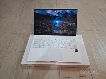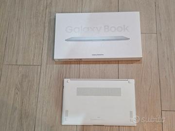 Galaxy book pro acquistato a ottobre 2022, ancora in perfette condizioni, schermo AMOLED full HD da 15,6”, processore Intel i7 evo di 11a generazione, 16 gb LPDDR4X di memoria ram, 512 gb di memoria interna espandibile (dual SSD), una porta HDMI, 2 porte USB-C (lato sx), 1 presa jack 3,5 cuffie, ingresso micro SD e una porta USB-A (lato dx), camera anteriore 720p con doppio microfono, scocca in alluminio/magnesio, molto sottile e leggero (circa 1 kg.), ideale per la portabilità. Completo di scatola, cavo e alimentatore da 65W per la ricarica Condizioni perfette