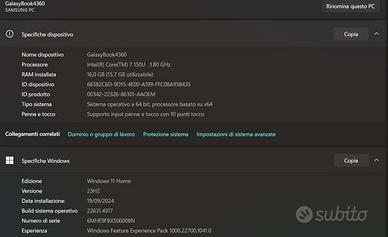 Vendo causa doppione uno splendido notebook convertibile 2in1 Samsung Galaxy Book4 360 15.6" Touch, con display Super AMOLED, con processore Intel Core i7 150U del 2024, Ram 16Gb DDR5 + SSD 512Gb (espandibile), batteria 68 W/h, modello NP750QGK-KG1IT, introvabile online da altri siti di vendita.