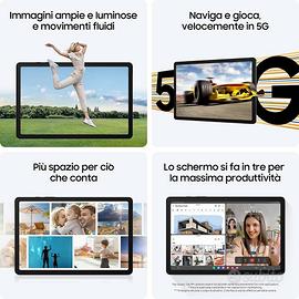 Vendo Samsung Galaxy Tab A9+ ricevuto come omaggio per inutilizzo. Ottime condizioni. * Stile moderno, display raffinato: Samsung Galaxy Tab A9+ presenta un elegante corpo in metallo, Graphite, Navy o Dark Blue; è dotato di display ampio e brillante per un intrattenimento coinvolgente, in tutte le condizioni di luce * Riempi i tuoi spazi con un audio dinamico di qualità: lasciati coinvolgere dai suoni immersivi degli altoparlanti di Galaxy Tab A9+, e ascolta musica e film con chiarezza e profondità strabilianti * Conserva tutto ciò che ami: il tablet Samsung Galaxy Tab A9+ offre fino a 6GB di RAM per ottimizzare le prestazioni durante il multitasking e una capacità di archiviazione di 128 GB (ampliabile fino a 1TB); salva tutti i tuoi file in alta risoluzione, conserva di più ed elimina di meno * Suddividi lo schermo, moltiplica la tua produttività: Galaxy Tab A9+ ti permette di dividere lo schermo in tre parti per un multitasking efficiente. Disegna, guarda immagini e intrattieni una conversazione video con 3 app aperte simultaneamente, senza la necessità di chiuderne una * Valorizza la tua serenità: proteggi le tue informazioni, archivia dati importanti con Secure Folder, monitora il livello di sicurezza complessiva del tuo dispositivo con Privacy Dashboard e vivi l’esperienza Samsung Galaxy senza preoccupazioni per la sicurezza * Contenuto della confezione: Samsung Galaxy Tab A9+, Cavo di Ricarica USB e Guida di riferimento rapido