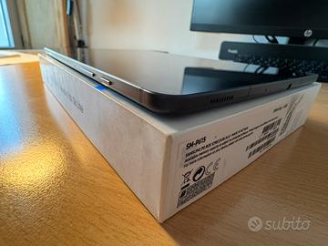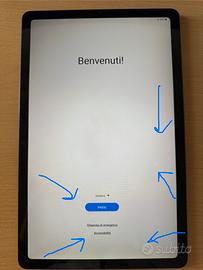 Vendo Samsung Galaxy Tab S6 Lite colore Oxford Gray con 64 GB di memoria. Il tablet è stato acquistato ad Agosto 2021 ed è accompagnato dallo scontrino originale. Nella scatola originale è inclusa la Samsung S Pen con cui è stato venduto. Non sono più invece inclusi nella scatola caricabatterie o cuffiette originali. Il tablet è ovviamnete usato ma non presenta graffi/crepe/rotture particolari. Presenta però questi difetti dovuti all’utilizzo: - 7/8 piccole macchie più chiare sullo schermo (indicate nella foto dello schermo con frecce blu). Sono dovute all’utilizzo continuo di uno sfondo che presentava punti chiari dove ora sono le macchie. - La presa caricabatterie (usb-c) del tablet a volte non fa contatto subito e bisogna quindi posizionare con molta attenzione il caricatore nella presa perché cominci la ricarica.