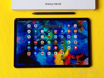 Samsung Tab S8 SM-X700 WiFi con vetro rotto (vedi foto 5) ma tutto perfettamente funzionante Ho anche la S Pen originale Versione 8 Gb RAM e 256 Gb di memoria espandibile con micro SD Display da 11” Processore Snapdragon 8 Gen 1 Audio Stereo con 4 altoparlanti Batteria ancora discreta