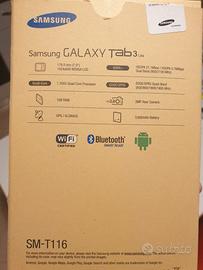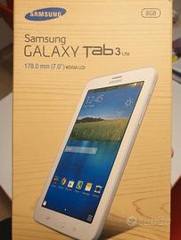 Vendo tablet Samsung Galaxy Tab3, del 2016, memoria 8GB espandibile, tenuto in ottime condizioni e formattato alle impostazioni di fabbrica, compleato di scatola originale e caricabatterie