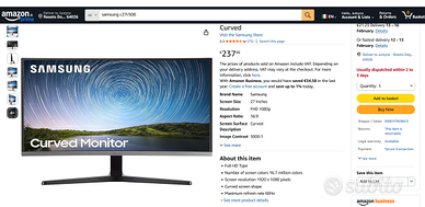 Vendo monitor Samsung C27R500 da 27 pollici, schermo curvo, ideale per lavoro, ufficio e multimedia.