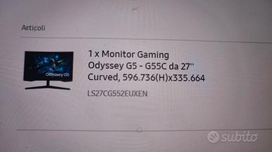 Vendo monitor gaming Samsung Odyssey G5 27'' Curve, acquistato mesi fa direttamente da Samsung. ho la fattura, Il monitor è guasto per pezzi di ricambio. display rotto come da foto. Alimentazione funzionante. Cornice perfetta. prezzo trattabile