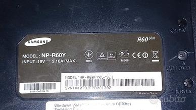 Notebook Samsung R60 in nero. Ideale per uso quotidiano. - Processore Intel Pentium Dual T2330 1.60GHz - Memoria RAM 1.00 GB - Disco rigido da 91.2 GB - Unità DVD RW