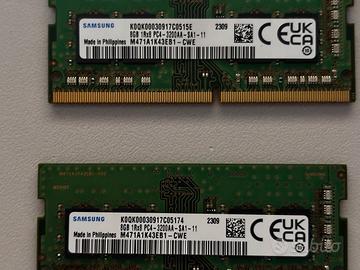 Vendo due banchi di RAM SAMSUNG SODIMM, con frequenza 3200MHZ, tot 16GB (2 stick da 8GB).