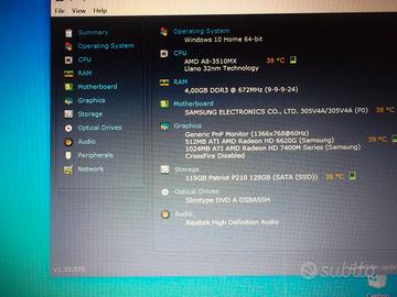 NOTEBOOK SAMSUNG NP305V5A SCHERMO 15,6 POLLICI PROCESSORE AMD A8 4GB+120GB SSD WINDOWS 10 APPENA MONTATO. CARICATORE ORIGINALE PRFETTAMENTE FUNZIONANTE ESTETICA COME FOTO ALLEGATE E ALTRE SU RICHIESTA LA BATTERIA SEMBRA ESAURITA ALTRE INFO AL TEL 3336436358
