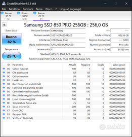 Vendo Samsung SSD 850 PRO da 256GB, formato 2,5" SATA III, usato ma perfettamente funzionante.