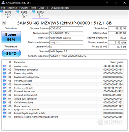 Per passaggio a ssd più capiente, vendo questo ssd m2 Samsung PM961 MZVLW512HMJP da 512 gb. In allegato foto delle sue attuali condizioni con software dedicati. Incluso nel prezzo busta blu antistatica e pad termico. Possibile consegna a mano per Modugno e Bari.