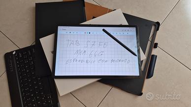 vendo tablet s7fe wifi perfetto sempre con pellicola nel display ancora montata, ha solo come da foto un piccolo segno in un angolo provocato da una cover, in più tastiera e 2 cover, una perfetta, l'altra come da foto con qualche segno interno, il tablet con scatola, caricatore s pen per scrivere o disegnare perfettamente, display 12.4 pollici memoria 64 giga espandibile con Microsd. Prezzo trattabile per trattative veloci.