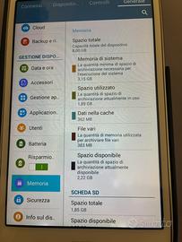Memoria dispositivo 8 gb + Espansione t-flash, in regato m-sd da 2 gb inserita nello slot. Utilizzato pochissimo. Stato batteria buono se non ottimo