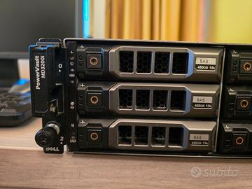 Vendo SAN marca DELL modello MD200i Doppio controller (attivo/attivo) installato Ogni controller ha: 1 pota LAN per il management, 4 porte LAN per l'iSCSI, 1 porta SAS per espansioni, una porta seriale per la configurazione Doppio alimentatore installato 12 hard disk SAS 15k 9 x ST3450857SS da 450 Gb 2 x HUS156045VLS600 da 450 Gb 1 x ST3600057SS da 600 Gb Chassis Serial Number: 1Q2X85J Firmware aggiornati all'ultima versione disponibile La spedizione è possibile ma il pacco sarebbe davvero grande e pesante. Possibile consegna a mano a Mercato San Severino, Salerno o Foggia.