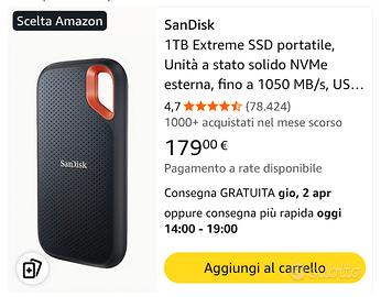 sandisk extreme portable ssd 1 TB di memoria Read 1050 Write 1000 nuovo mai utilizzato in perfette condizioni nessun segno hard disk portatile funziona con pc/windows/ios/mac/Android
