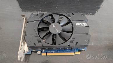 Vendo scheda video Sapphire HD 7770 GHz Edition perfettamente funzionante. Specifiche tecniche: Memoria: 1GB GDDR5 Interfaccia: PCI Express 3.0 Uscite Video: 1x HDMI, 1x DisplayPort, 1x DVI (supporta configurazioni multi-monitor). Alimentazione: Richiede un connettore a 6 pin (assicurarsi che l'alimentatore lo abbia). Raffreddamento: Design Sapphire custom con ventola centrale. Includo nella vendita il cavo di alimentazione PCI Express a 6 pin necessario per far funzionare la scheda. In questo modo, se il tuo alimentatore non ha il connettore nativo, potrai collegare la scheda senza problemi.