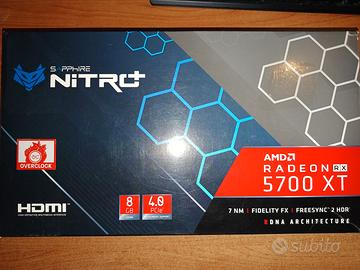 Come nuova, usata poco, perfettamente funzionante. SCHEDA GRAFICA AMD RADEON SAPPHIRE NITRO+ RX 5700 XT 8G GDDR6 GPU: Boost Clock: Up to 2010 MHz GPU: Game Clock: Up to 1905 MHz Memoria: GDDR6 da 8 GB / 256 bit. 14,4 Gbps effettivi Processori stream: 2560 4K @ 120Hz Tecnologia di raffreddamento Tri-X PCIe 4.0, 2x HDMI, 2x DP Risoluzione: 5120x2880