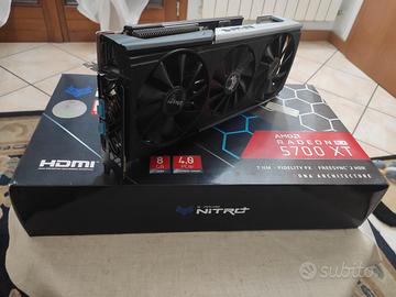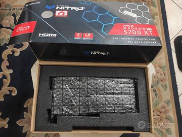 Vendo scheda video RX 5700 XT, modello Sapphire Nitro+ con interfaccia termica Honeywell PTM 7950 al posto della tradizionale pasta per migliori prestazioni e lunga durata. La scheda e' in perfetto stato di conservazione e di funzionamento. Usata nel mio PC personale da gaming fino a poco tempo fa. Mai fatto overclock, sempre usata con cura. E' completa della sua scatola originale, anch'essa in buonissimo stato. Astenersi affarsisti e perditempo, grazie.