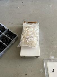 •Descrizione: Scatola e bustina contenenti connettori RJ45 trasparenti e altri componenti per cablaggio di rete (tappi e passacavi).