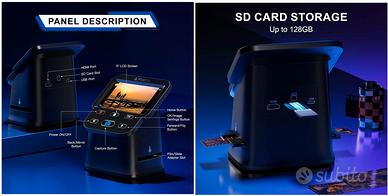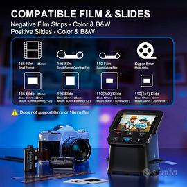 vendo, per inutilizzo, uno scanner multiformato per diapositive e pellicole fotografiche con schermo LCD 5" NUOVO, marca PORTTA, ancora nel suo scatolo, completo di tutti gli accessori visibili nell'ultima foto dell'annuncio. Le caratteristiche sono le seguenti: - Converti pellicole in digitale a casa con la possibilità di scansionare facilmente pellicole da 35 mm (135), 126, 110 e Super 8 (solo foto), inclusi negativi e diapositive a colori e in bianco e nero. Uno scanner versatile per pellicole, negativi e diapositive che non richiede un computer. - Scansioni ad alta risoluzione da 16 MP / 22 MP, output standard da 16 MP o migliorato da 22 MP per dettagli più nitidi e immagini più chiare. - Ampio schermo LCD da 5" per anteprima immediata; è possibile inoltre regolare e allineare le foto in tempo reale direttamente sullo scanner per una scansione facile e precisa. - Salvataggio su scheda SD e uscita HDMI. Le foto possono essere salvate direttamente su una scheda SD fino a 128 GB (NON INCLUSA NELLA CONFEZIONE) o collegare lo scanner ad un televisore tramite HDMI per la visualizzazione in tempo reale. - Strumenti di regolazione dell'immagine integrati, attraverso i quali è possibile regolare luminosità, colore e orientamento per migliorare la qualità dell'immagine prima di salvare la foto in digitale. Prezzo NON TRATTABILE, offerte insensate al ribasso saranno ignorate