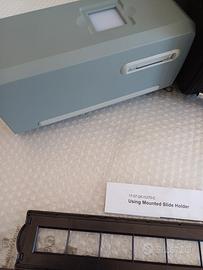 Completo di borsa, alimentatore, cavo USB, un supporto per dia e uno per pellicole.