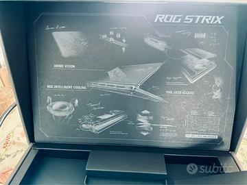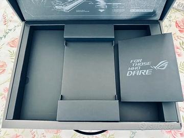 Scatola Originale ASUS ROG Strix Scar 18 2025 - Perfette Condizioni, Solo Packaging! Cofanetto premium con illustrazioni stampate sul coperchio interno (AniMe Vision, ROG Intelligent Cooling, tool-less access) - NESSUN LED o luci reali, solo grafiche semitrasparenti di alta qualità per un effetto visivo. Include slogan iconici “Gamers On” e “For Those Who Dare”. Dimensioni 49x36x10.5 cm, ideale per collezionisti ROG, reshipping o display gaming setup.