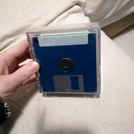 Floppy tutti usati con scritte sull'etichetta. Scatola completamente trasparente