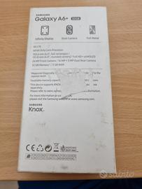 Scatola vuota Samsung Galaxy A6+, in buone condizioni, completa di Warranty Card, guida di riferimento rapido (istruzioni), precauzioni di sicurezza e Samsung service.