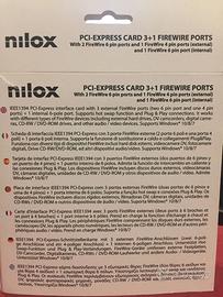 Scheda Firewire NILOX 4 porte per pc, acquistata per errore e mai utilizzata, vendo in confezione originale con cavo in dotazione. Pagata 25 Euro, vendo a 10 Euro. Spedizione possibile