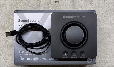 Scheda audio Creative SoundBlaster X3. Una delle migliore scheda per uso professionale/gaming. Scheda audio DAC e amplificatore USB esterno 7.1 ad alta risoluzione con tecnologia Super X-Fi® e SmartComms Kit. FUNZIONA CON Windows | macOS | PS5™ | PS4™ | Nintendo Switch™. Riproduzione ad alta risoluzione a 32 bit/192 kHz con DNR/SNR da 115 dB. Le caratteristiche sono reperibile dal sito del produttore. Stato pari al nuovo, vendo per inutilizzo