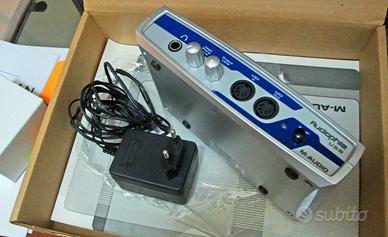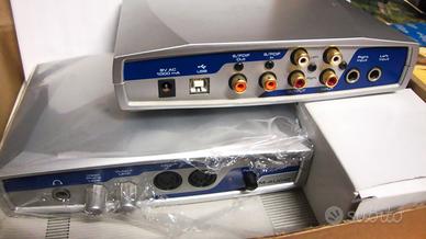 Interfaccia esterna per registrazione audio digitale a 24 bit / 96 kHz, USB, con 2 In e 2 Out analogici di tipo sbilanciato, 1 In e 1 Out stereo digitali S/PDIF coassiali, MIDI In e Out, presa per cuffia con volume regolabile, regolazione volume generale.