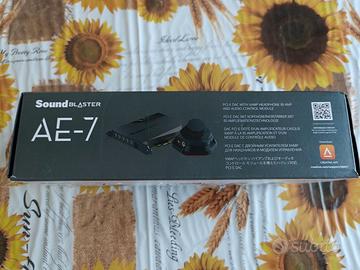 Creative Sound Blaster AE-7 - Scheda audio DAC/amplificatore PCI-e ad alta risoluzione con biamplificatore per cuffie Xamp Discreet e modulo di controllo audio grigio/nero Il piacere del suono ad alta risoluzione: DAC di riferimento 9018 ESS SABRE, con una gamma dinamica di 127 dB (DNR), lettura DSD a 32 bit a 384 kHz, - 120 dB (0,0001%) Suono surround coinvolgente - Il Sound Blaster AE-7 supporta 5.1 canali di altoparlanti discreti e fino a 7.1 canali audio virtuali per cuffie Qualità audio perfetta tramite cuffie Migliora l'audio: Sound Blaster AE-7 supporta 5.1 canali discreti per gli altoparlanti e fino a 7.1 canali surround virtuali per le cuffie Questi comodi controlli a portata di mano: l'Audio Control Module con una grande manopola di controllo del volume, connettori da 6,3 e 3,5 mm per l'ingresso del microfono, un'uscita per le cuffie e un microfono integrato SUPPORTO ASIO 2.3, riproduzione e registrazione. Acquistata dic/2025 quindi con ancora quasi 2 anni di garanzia Assolutamante come nuova, il modulo esterno mai usato, vendo perché ho collegato il pc ad un sistema home theatre. 150 euro + eventuali s.s.