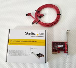 La scheda controller PCI Express (SATA 3.0) con 2 porte SATA 6 Gbps PEXSAT32 offre una semplice connettività tra un computer host e dispositivi SATA 3.0. Una conveniente soluzione per il collegamento di dispositivi di archiviazione ad alta velocità come dischi rigidi ad alto RPM e unità SSD (Solid State Drives). La scheda controller è compatibile all'indietro con i dispositivi SATA 2.0 e offre la versatilità necessaria per l'utilizzo di dispositivi di archiviazione meno recenti. Assicura il supporto delle modalità RAID 0 e 1, inoltre la scheda controller SATA 3.0 comprende una staffa a basso profilo/mezza altezza per l'installazione in case di computer con fattore di forma ridotto. Allego come da foto due cavi SATA.
