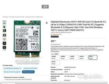 Scheda di rete Intel AX211 NGW, per PC portatile, pagata 30 Euro,nuova.