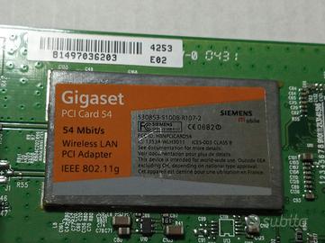 SCHEDA DI RETE WI-FI PCI n.1 - Scheda di rete Gigaset PCI 54 Mbit/s, Wireles LAN, IEEE 802.11g. Prezzo: 15,00 euro. N.2 - Scheda di rete Wireless PCI 22Mbps DWL-520+, 2.4GHzWirelessLANPCICard, IEEE 802.11b. Prezzo: 15,00 euro.