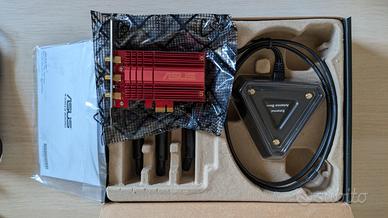 vendo scheda di rete wifi PCI express perfettamente funzionante modello Asus PCE-AC68 802.11ac dual-band Wireless-AC1900 Adattatore PCI-E Scheda di rete PCI-Ex Wireless AC DUAL Band 1300/600 Mbps 2.4Ghz /5Ghz dualband Chipset 802.11ac di quinta generazione per un simultaneo ed immediato ambiente dual-band 2.4GHz/5GHz fino a 1167Mbps super-veloce Antenna con posizionamento flessibile per individuare la migliore ricezione del segnale nel proprio ambiente. Aggiornamento immediato Wi-Fi per il vostro desktop: nessun cavo Ethernet sarà più necessario. Progettazione ad alta potenza del segnale per eliminare le zone morte con il 150% in più di copertura Dissipatore personalizzato di calore per un funzionamento non-stop più stabile e affidabile