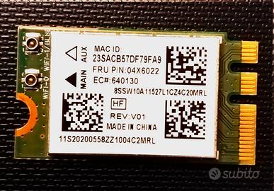 Vendo scheda di Rete Wireless Bluetooth Qualcomm Atheros QCNFA335, usata pochissimo, come nuova, perfettamente funzionante: • Velocità di trasmissione 150 Mbps • Banda di frequenza: 2.4G + 4.0 Bluetooth • Standard wireless: IEEE 802.11g, IEEE 802.11b, IEEE 802.11n • Tipo di interfaccia: NGFF M2 • Protocollo wireless: 802.11n