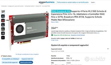 Supporto 4 porte M.2 SSD: Permette di collegare fino a 4 SSD M.2 contemporaneamente per una notevole espansione della memoria. Compatibile con M.2 NVMe o M.2 SATA, offrendoti una scelta versatile in base alle tue esigenze di archiviazione.