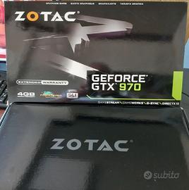 Vendo scheda grafica ZOTAC GeForce GTX 970. È in ottime condizioni, in confezione originale. FUNZIONANTE - 4GB di memoria GDDR5